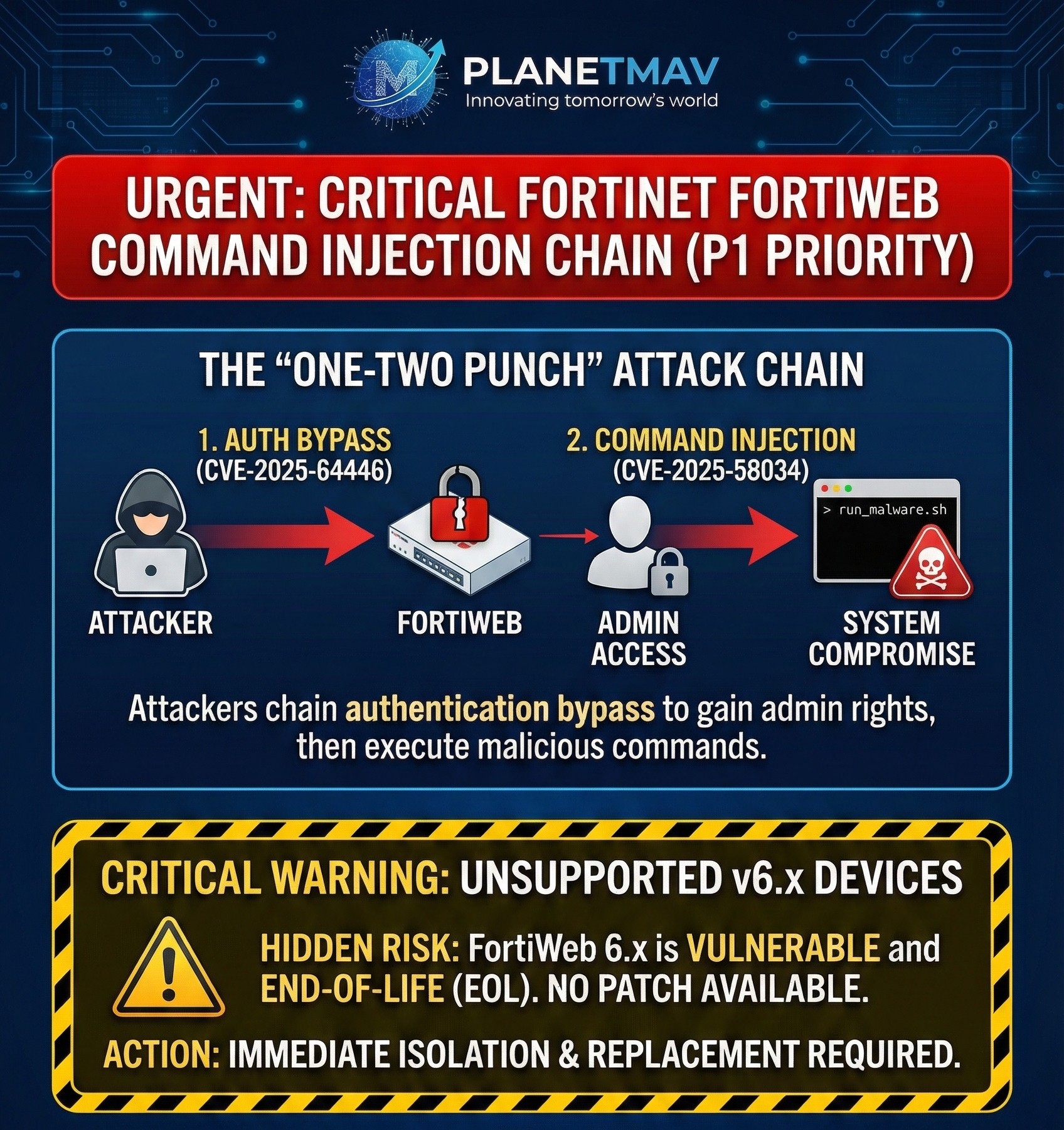 This alert refers to a critical situation where attackers are chaining together two vulnerabilities to take full control of FortiWeb…